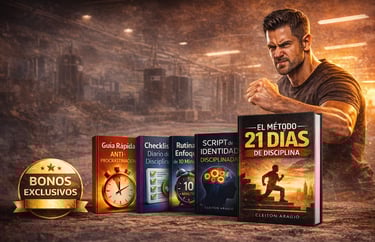 Este método incluye El Método 21 Días de Disciplina, un plan práctico paso a paso con micro-acciones diarias que te enseñan a construir constancia real, vencer la procrastinación y desarrollar disciplina como una habilidad entrenable.